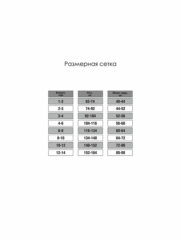 Таблица детских колготок Эра