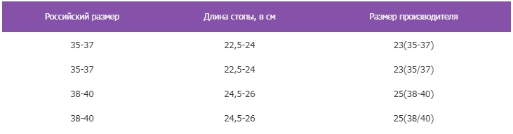 Таблица размеров носков
